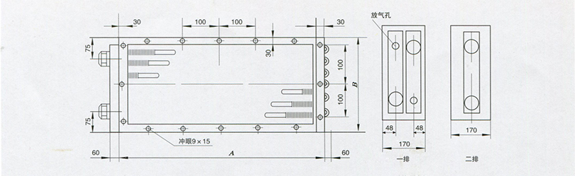 UⅡ型散热排管为半回路(一排)或双回路(二排)的精东APP免费下载安装,可加热或冷却空气。其肋片管绕制完毕后,需进行表面浸镀锡合金,以使肋片与管子接触紧密坚固,达到美观防腐的作用,结构特性见下表。